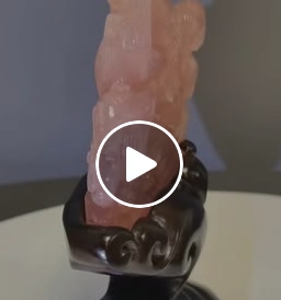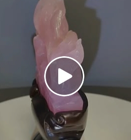 在柔潤粉光之中,一隻靈動九尾狐靜靜佇立,以晶瑩通透的深粉水晶精雕細琢,尾羽流轉如雲霧輕舞。